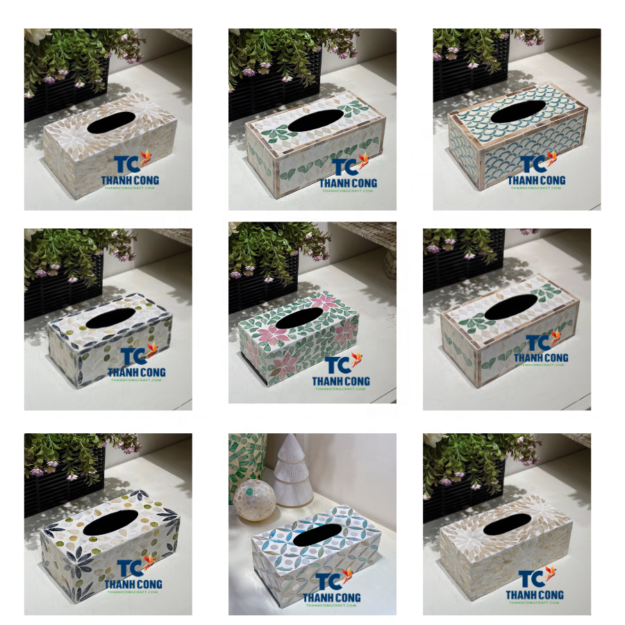 Boîte à mouchoirs en nacre authentique pour le style intérieur et les espaces de luxe à l'aide de boîte à mouchoirs de qualité supérieure avec mosaïque de perles