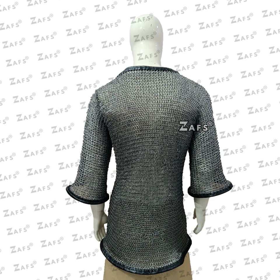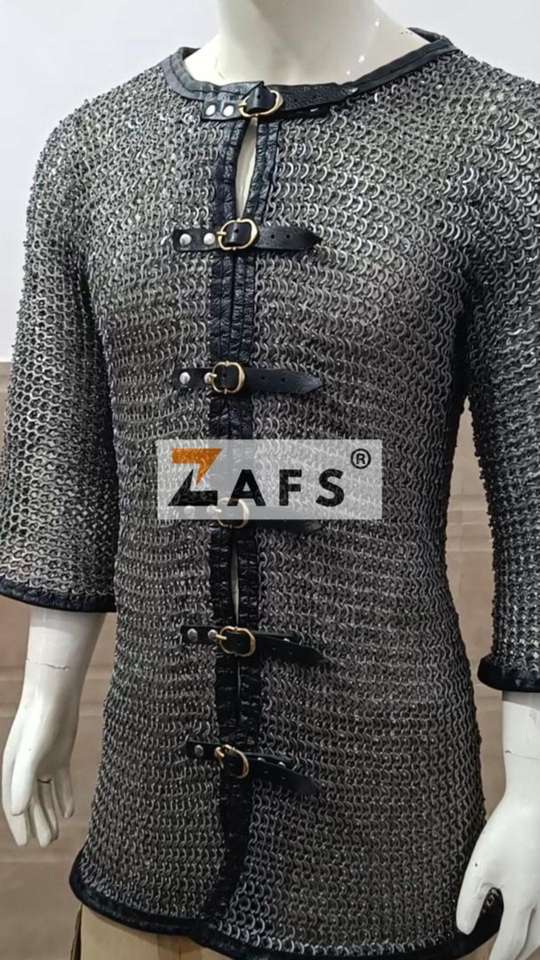 Chemise de guerrier médiévale authentique à demi-manches en acier doux, ornée de cuir, faite à la main, pour costume, cosplay et reconstitution historique
