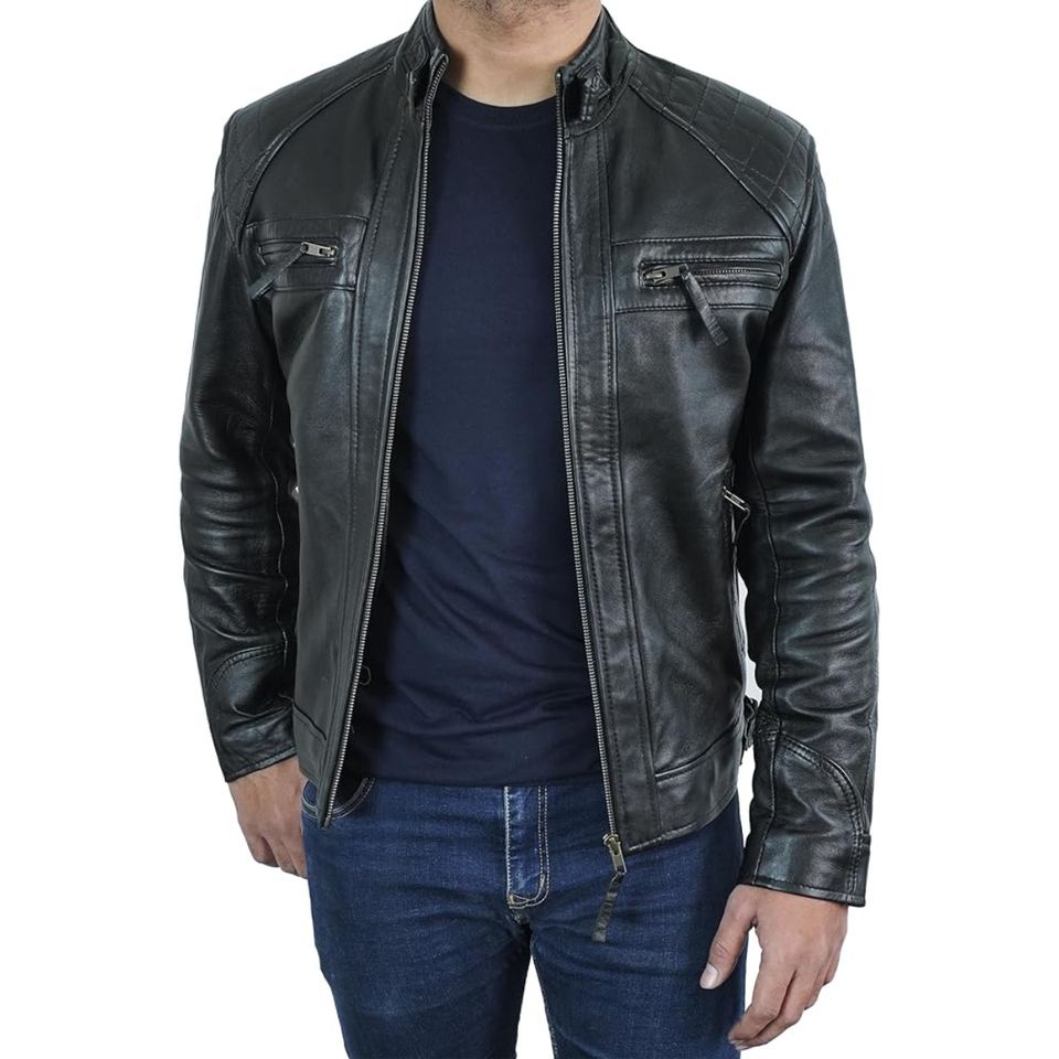 Veste en cuir d'agneau authentique pour homme, véritable cuir d'agneau, veste d'hiver