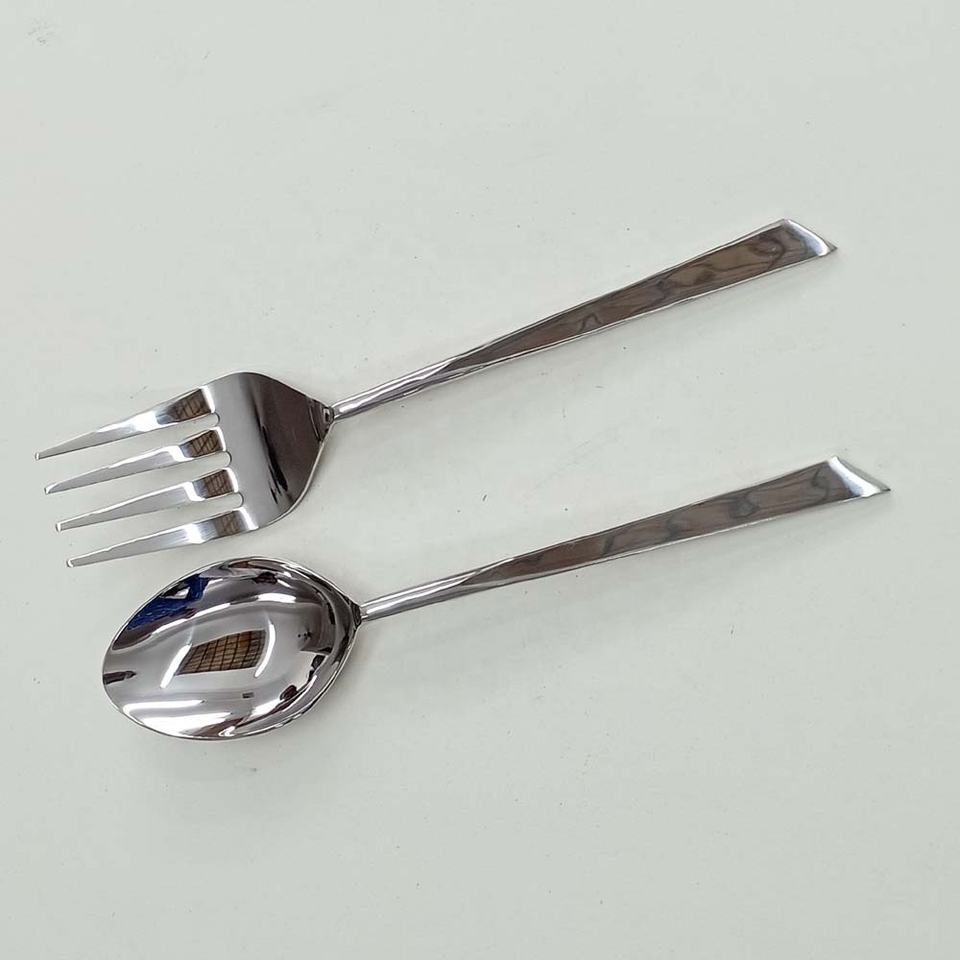 Ensemble de fourchettes et cuillères en argent en acier inoxydable, aspect authentique, avec poignée plate, ensemble de serveurs à salade modernes