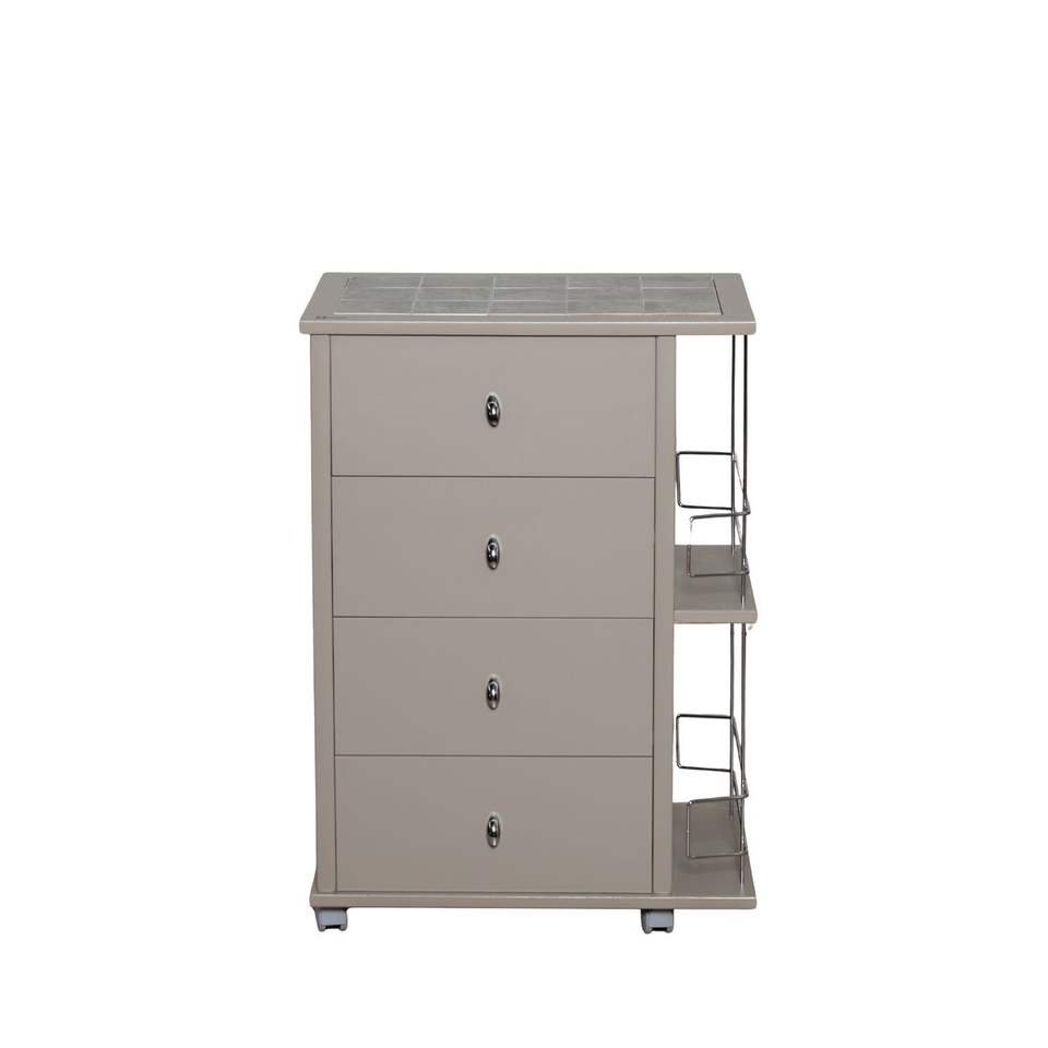 Meuble de cuisine authentique et moderne en bois de hêtre massif avec panneau HDF, chariot à tiroirs, plateau en carrelage, poignées en plastique chromé, porte-bouteilles, 23 kg
