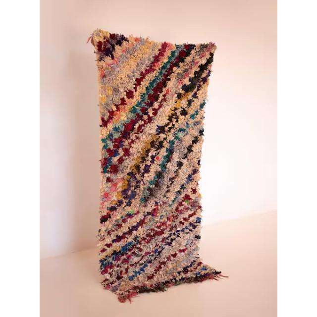 Tapis Boucherouite marocain authentique fait main, style bohème chic, coloré, vintage, artisanat Atlas, décoration.