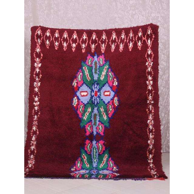 Tapis Boucherouite marocain authentique fait main, style bohème chic, coloré, vintage, artisanat Atlas, décoration.