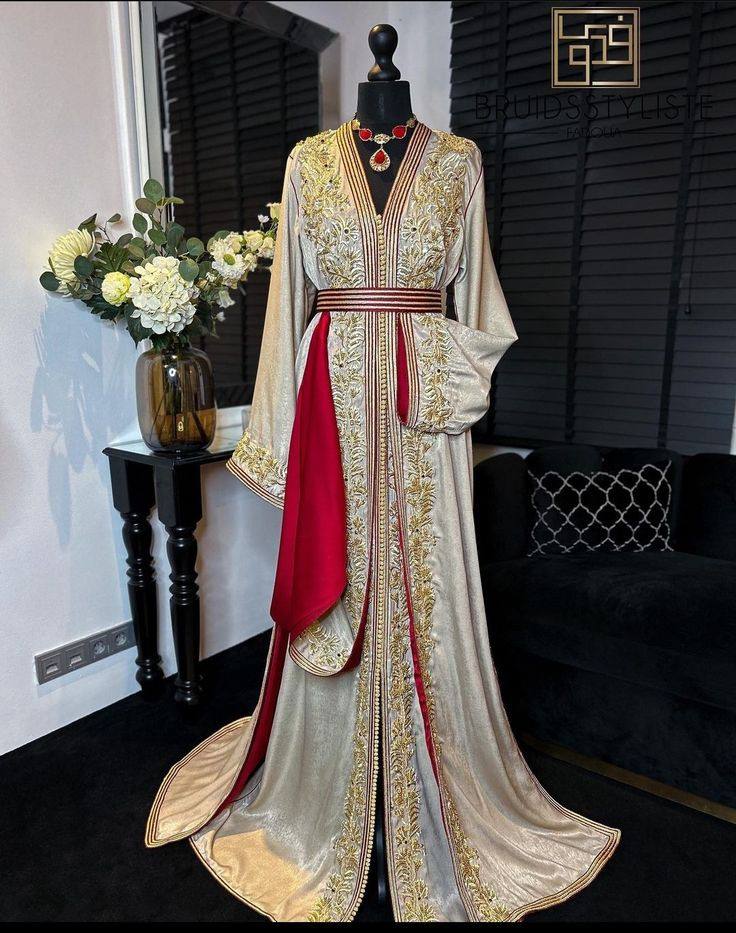 Al Hijrah Abayas Caftan marocain en satin haute qualité avec broderie sophistiquée, longueur au sol, coloris charbon