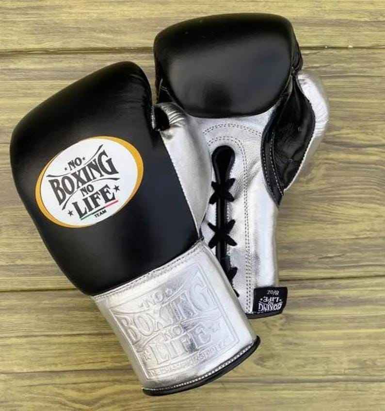 Gants de boxe professionnels authentiques bleu marine/argent tout nouveau design à lacets gagnant avec logo personnalisé pour MMA et Kick Boxing