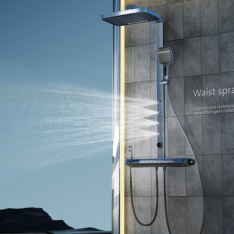 Pomme de douche suralimentée multifonctionnelle Authentique Nouveau Style Lumière Ambiante Température Constante Table Retour Bain Douche Robinets