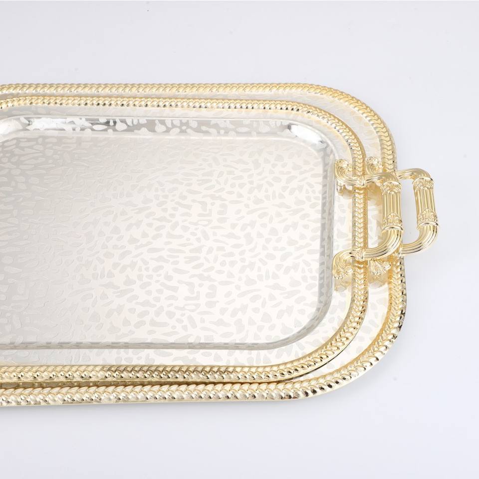 Plateau de service en métal rectangulaire au design floral turc ottoman authentique Plateau en zamak écologique