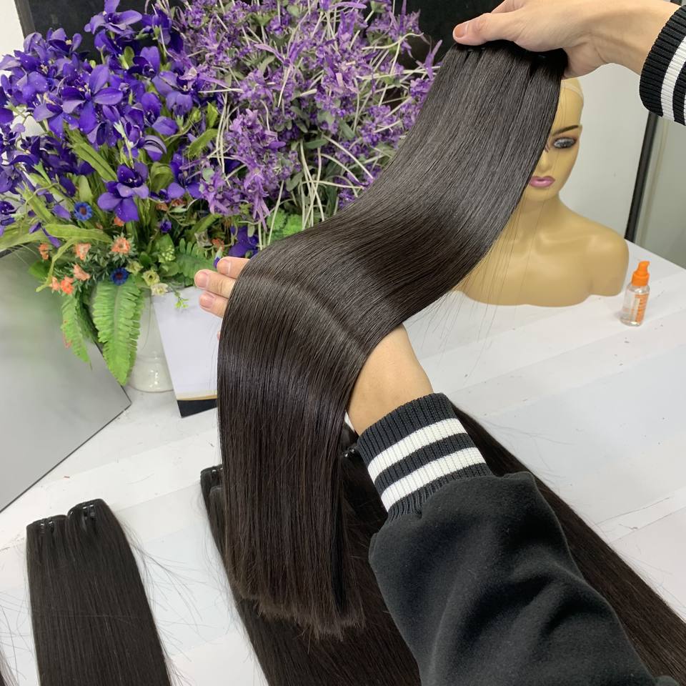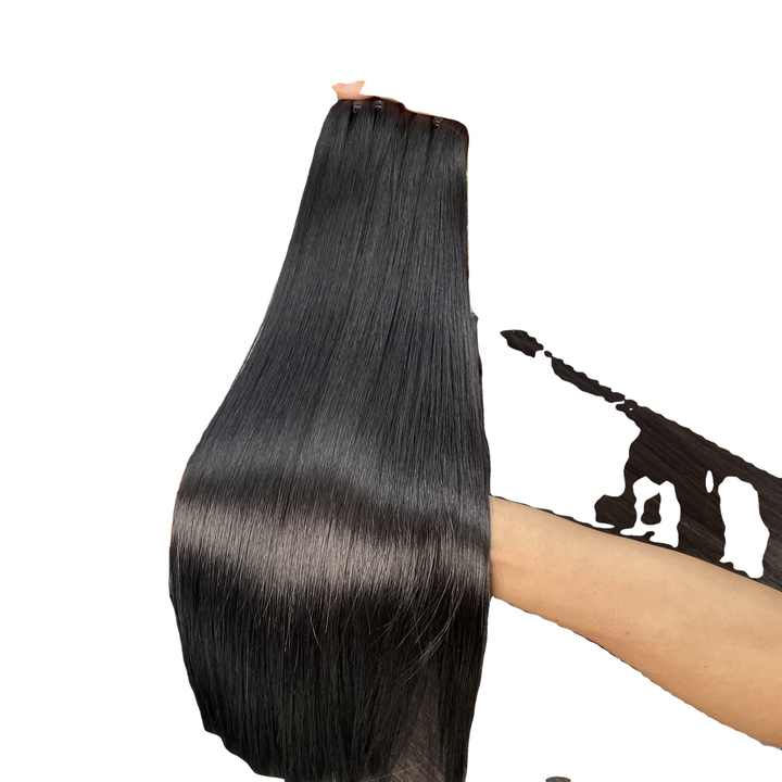 Authentic Pure Quality 100% Satisfaction Raw Virgin Human Hair Extensions Vietnam Single Weft Natural Black Color Super Double