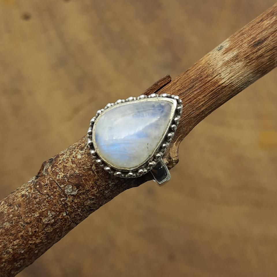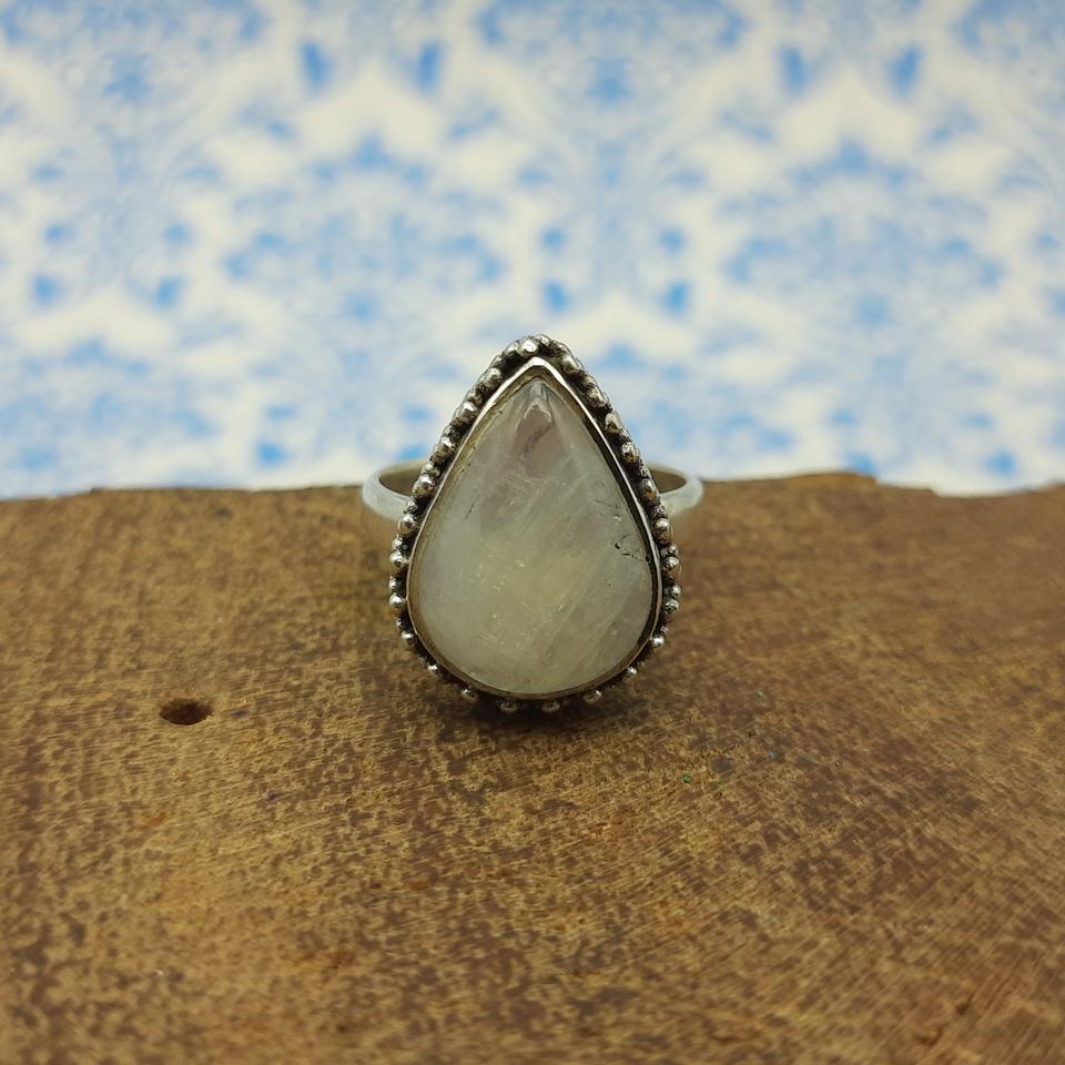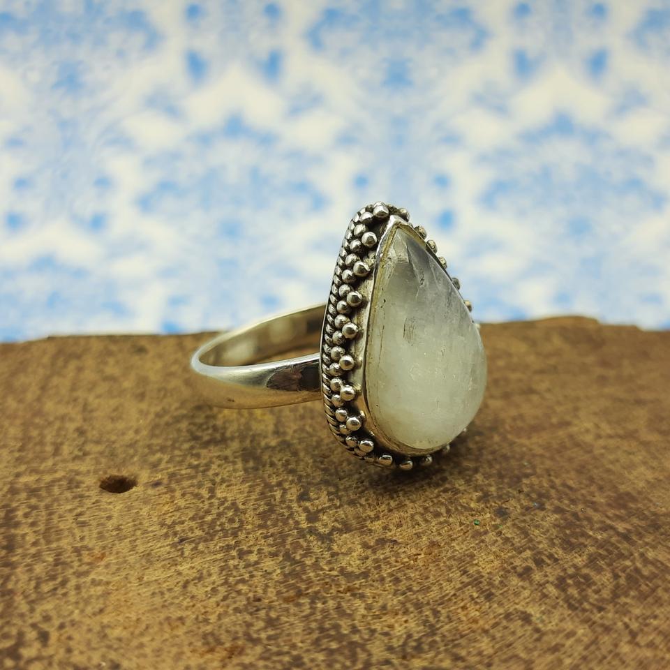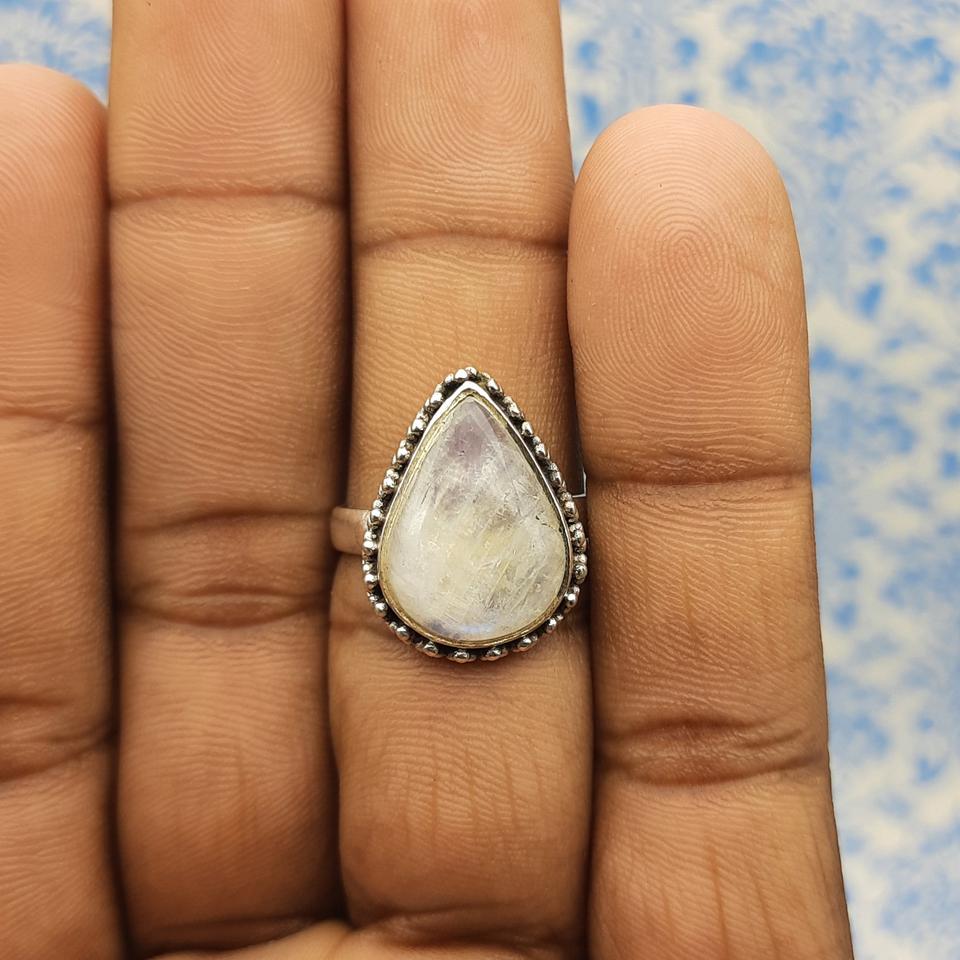 Authentique bague bohème en pierre de lune arc-en-ciel en argent sterling 925 serti de lunette artisanale en forme de larme pour les mariages