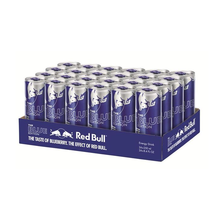 Boisson énergisante authentique Red Bull Blue Edition à la myrtille, 24 canettes de 250 ml, 80 mg de caféine, saveur myrtille fruitée, vente en gros, approvisionnement en vrac