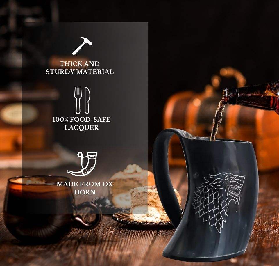Tasse à manger royale authentique de taille personnalisée Gravure artisanale de corne de Viking pour la conception originale de Noël médiéval pour l'eau de café