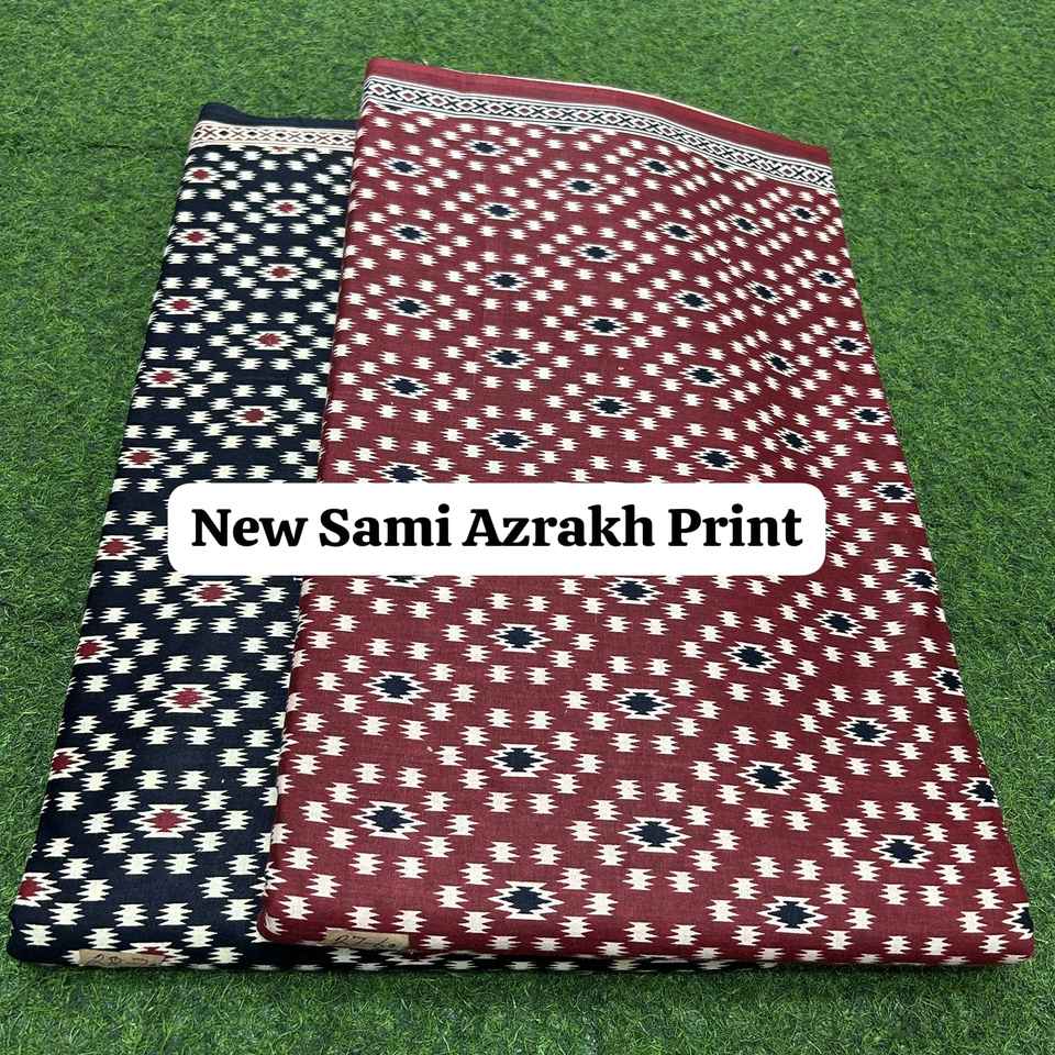 Tissu en coton imprimé Sami Azrakh authentique, qualité supérieure, textile indien, adapté pour les robes Kurti, les dupatta et l'artisanat