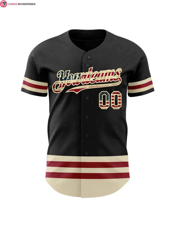 Maillot de baseball à boutons complets par sublimation authentique drapeau américain vintage noir personnalisé pour la ligne de crème Softball vintage de haute qualité