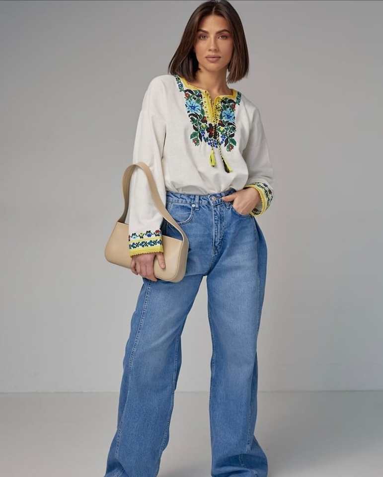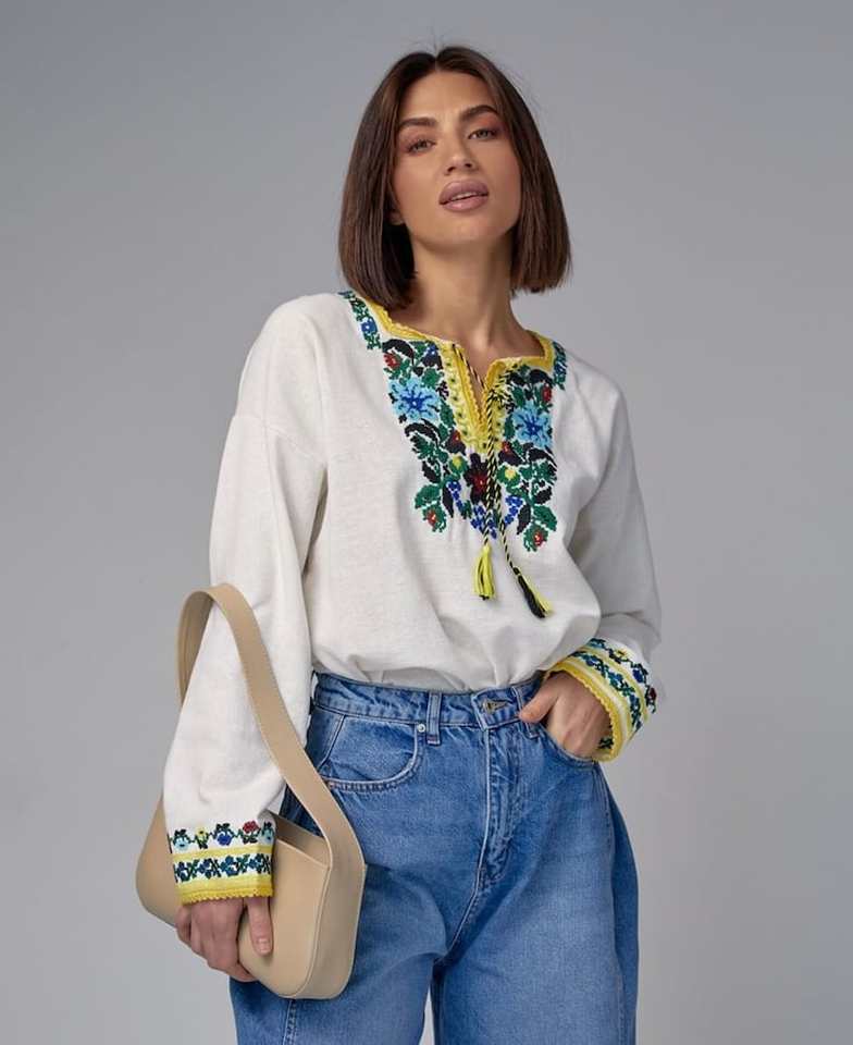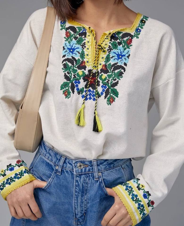 Authentic Traditional Bukovina Vyshyvanka Blouse for Women Ukrainian Embroidery & Folk Style Natural Waistline