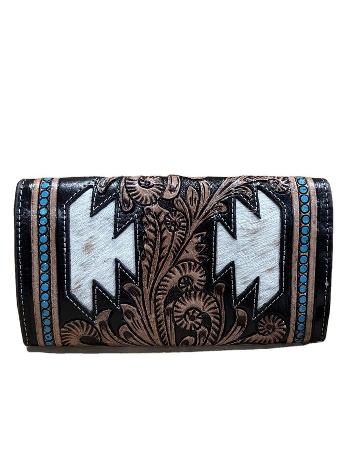 Portefeuille et pochette en cuir véritable authentique de style western pour femme, fait main, avec protection RFID, fermeture à pression, fabriqué en Inde