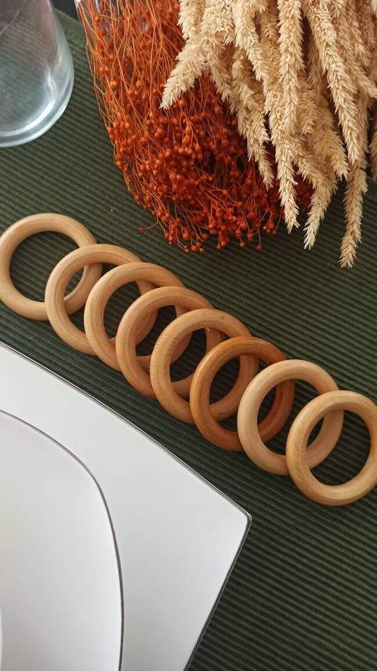 Ensemble d'anneaux de serviette en bois authentiques pour une décoration de table traditionnelle, rehaussant le style de table culturel avec un charme naturel