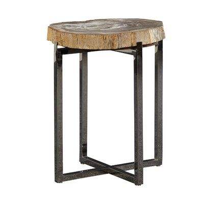 Table d'appoint authentique en bois avec dessus en bois naturel et structure en fer robuste