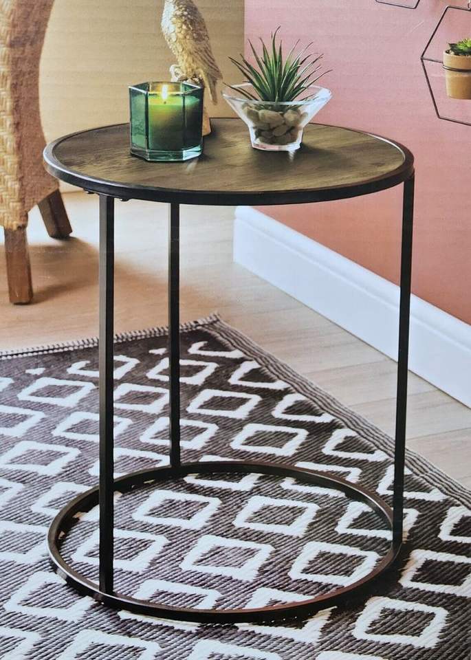 Nom du produit:Table d'appoint avec plateau en bois et pieds en fer