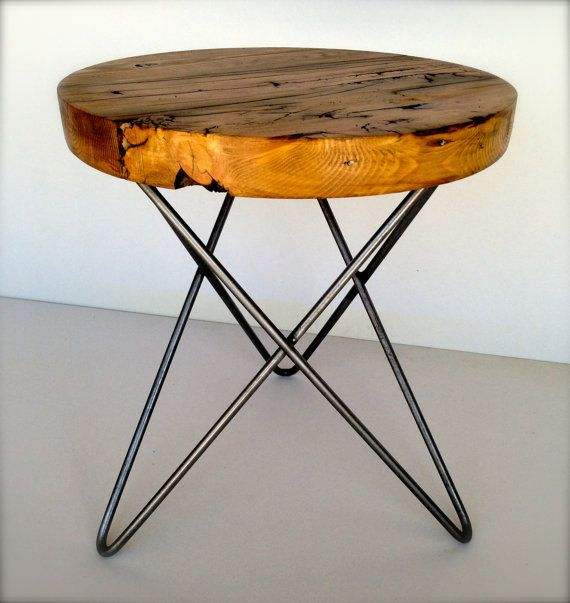 Table d'appoint authentique en bois avec dessus en bois naturel et structure en fer robuste