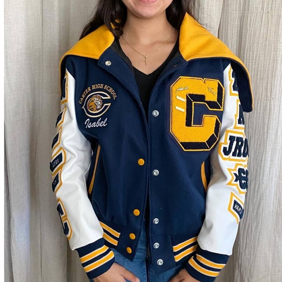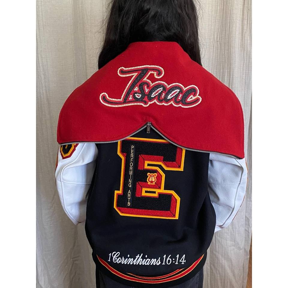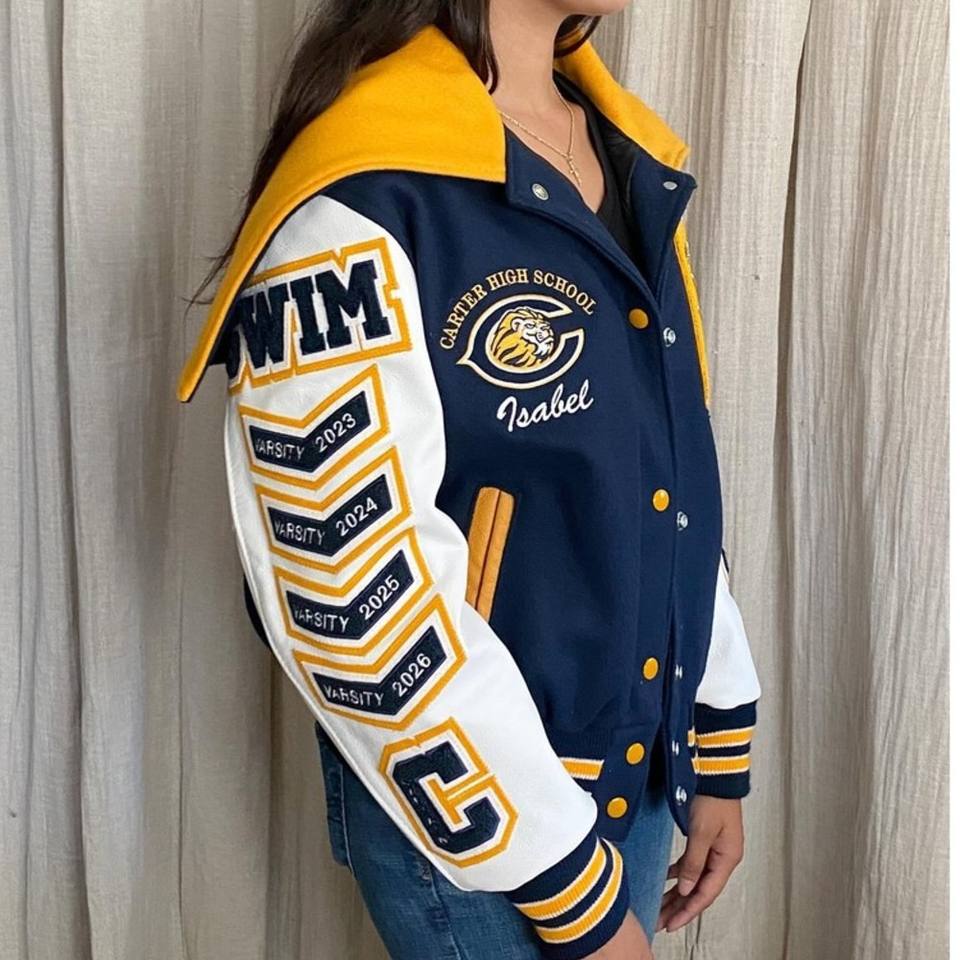 Veste universitaire de rue haute en cuir de laine authentique avec logo de broderie en chenille personnalisé conçoit un col montant pour les équipes d'étudiants