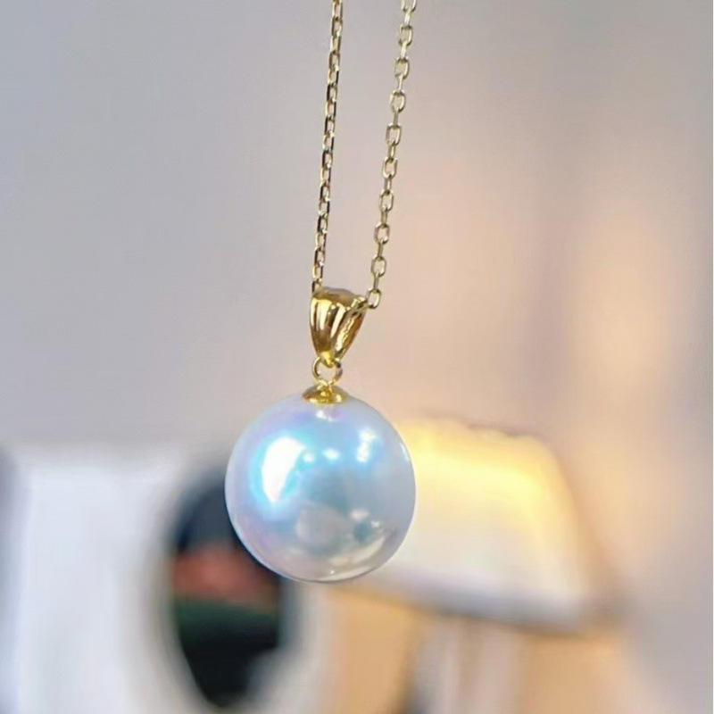 Collier authentique en perles d'eau douce Zhuji de 10-11 mm avec pendentif en or 18 carats, chaîne en argent, presque parfait, rond, Aurora, cadeau inclus