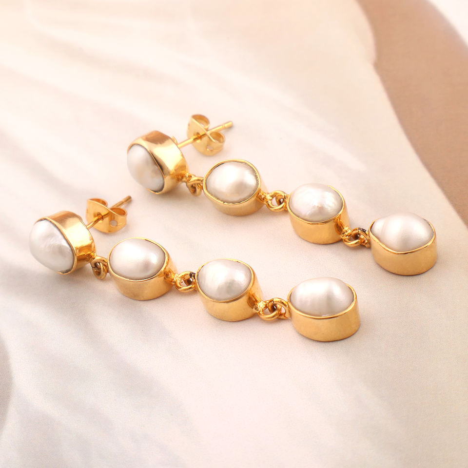 Boucles d'oreilles pendantes pendantes en perles d'eau douce authentiques pour femmes, légères, design minimaliste, vêtements de tous les jours.