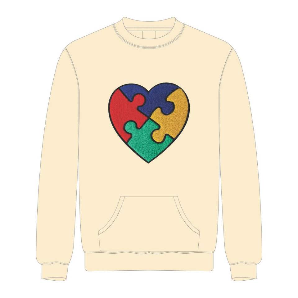 Sensibilisation à l'autisme Coeur Puzzle Chenille Broderie Neutre Ras Du Cou Pull Sweat Unisexe Coton Polaire Soutien Vêtements