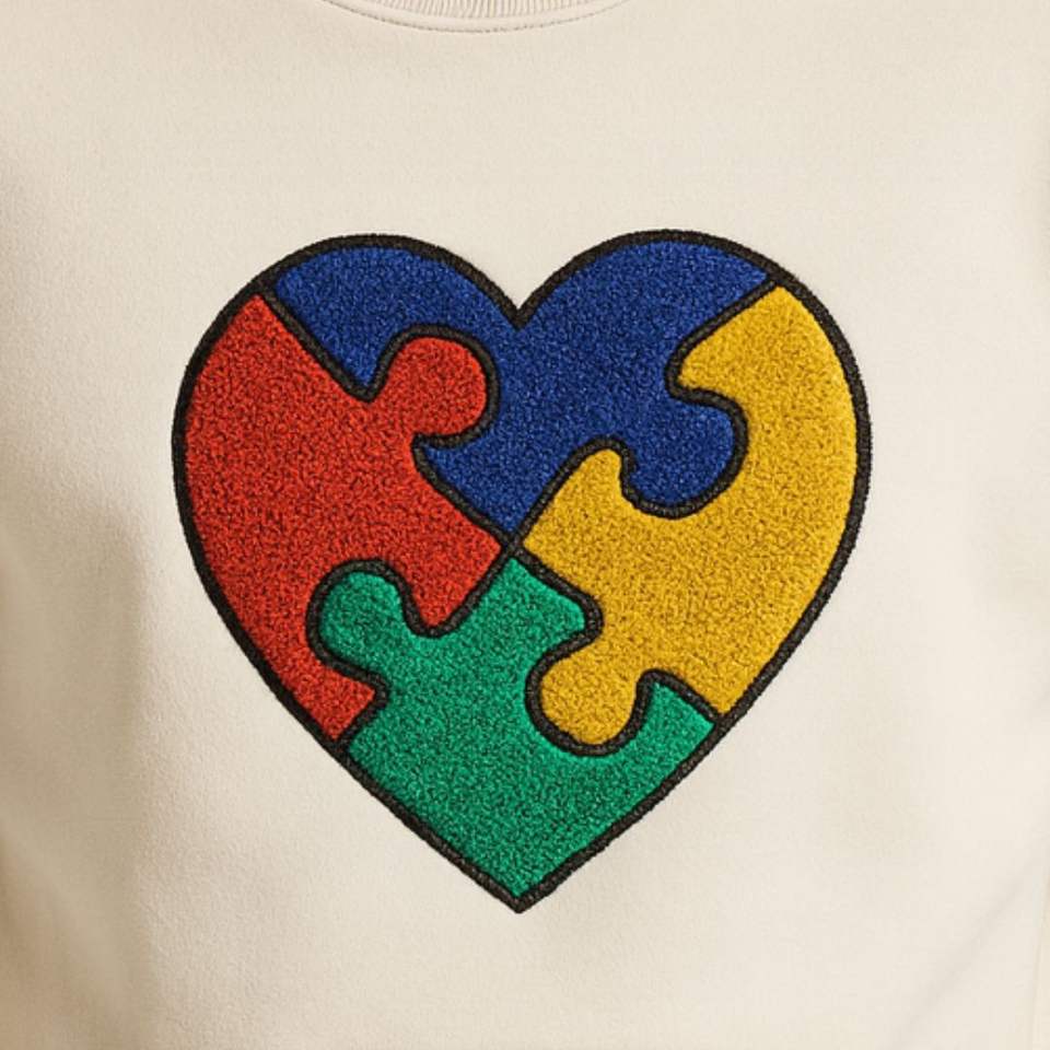 Autism Awareness Puzzle Heart Chenille Crewneck Sweatshirt Premium Unisex Fleece Support Autism Puzzle Top Adoptive Clothing