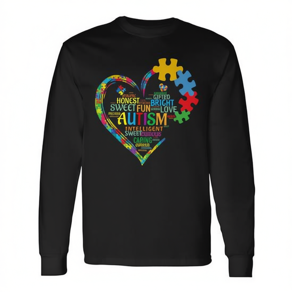 T-shirt à manches longues Autism Heart pour la sensibilisation à l'autisme