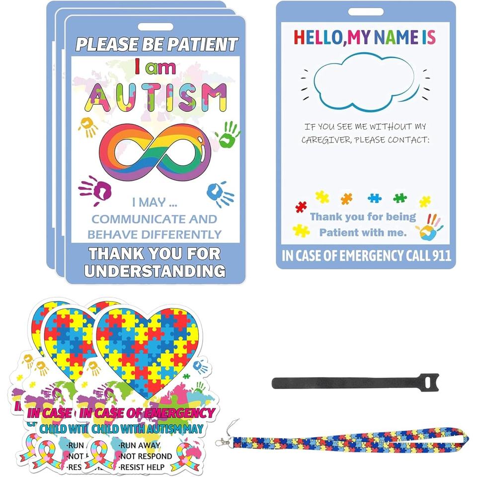 Autiste s'il vous plaît être patient autisme étiquette d'identification médicale avec autocollants et crochet pour porte de fenêtre de maison