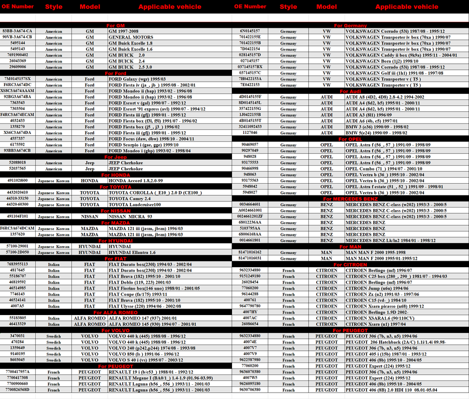 | FORD | ESCORT V | 1990.07-1993.08 | 1.6 (77KW,105PS) |