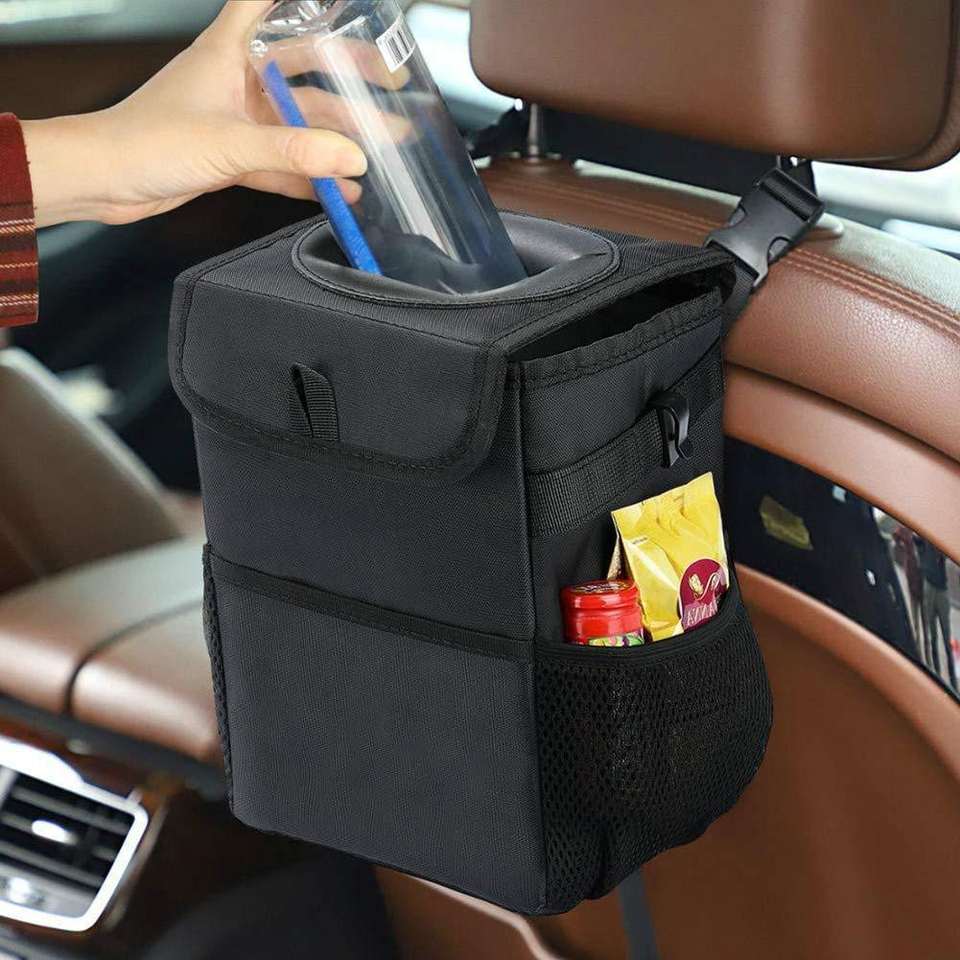 Popular Auto Black Waterproof Oxford Frunk Organizer Car Trash Can with Lid and Storage Pockets Garbage Bag for Use