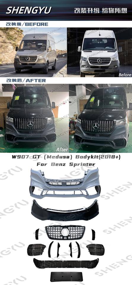 Systèmes de carrosserie automobile pour Benz Sprinter W906 W907 W910 2018-2020 au modèle GT/Medusa comprenant un pare-chocs avant avec calandre