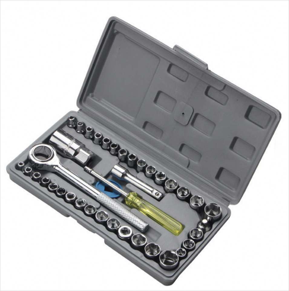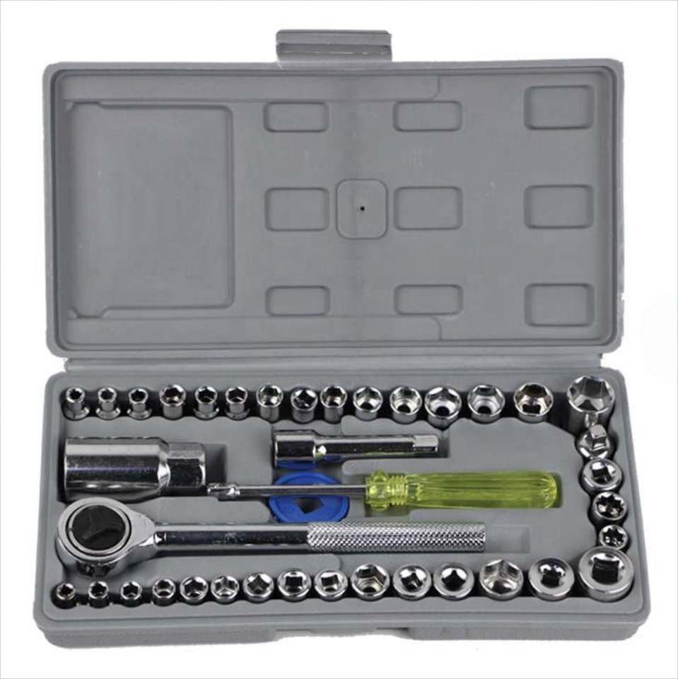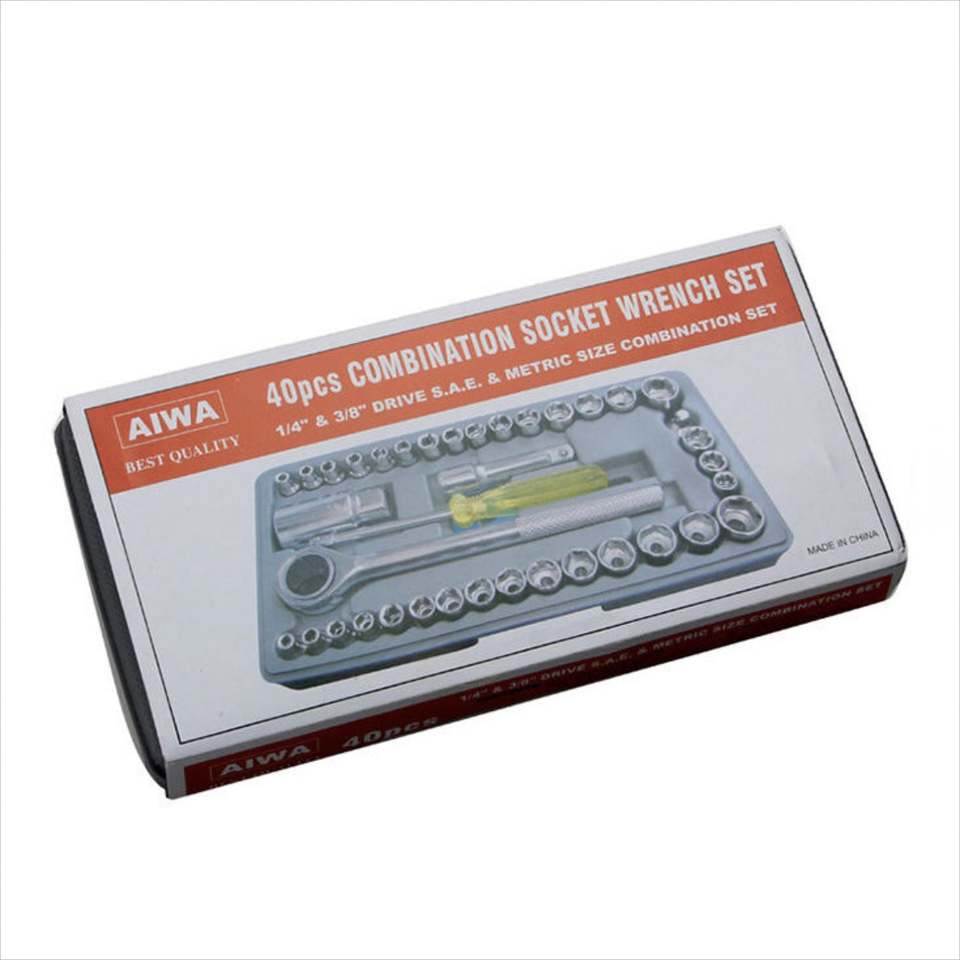 Ensemble d'outils de réparation automobile 1/2\" 3/8\" 1/4\" en acier à haute teneur en carbone, outils à main, jeu de clés combinées de 40 pièces, boîte à outils en plastique OEM