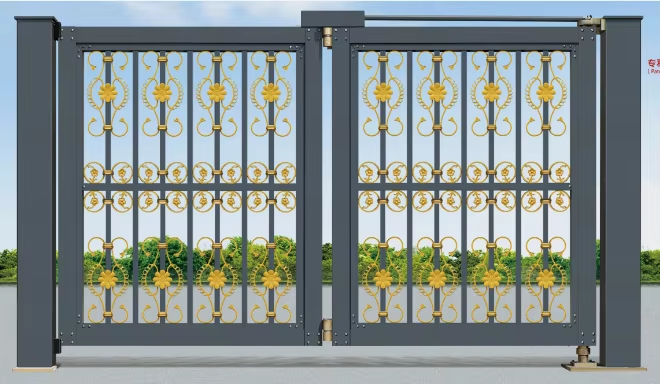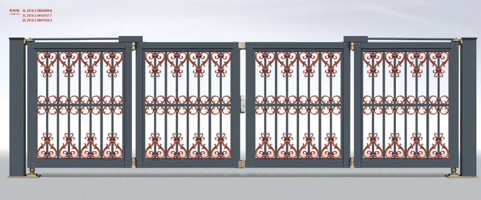 Éclairage électrique automatique Porte de sécurité pliante intelligente Clôture pivotante Chemin de fer extérieur Roues de portail automatique sans rail
