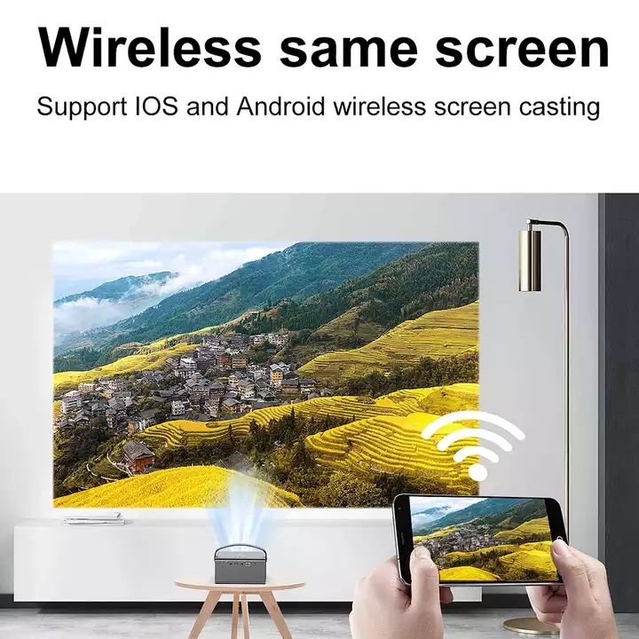 Mini projecteur HD 4K Android à mise au point automatique Lecteur intelligent de jeux vidéo et de films pour le camping en plein air avec lampe LCD portable Bluetooth