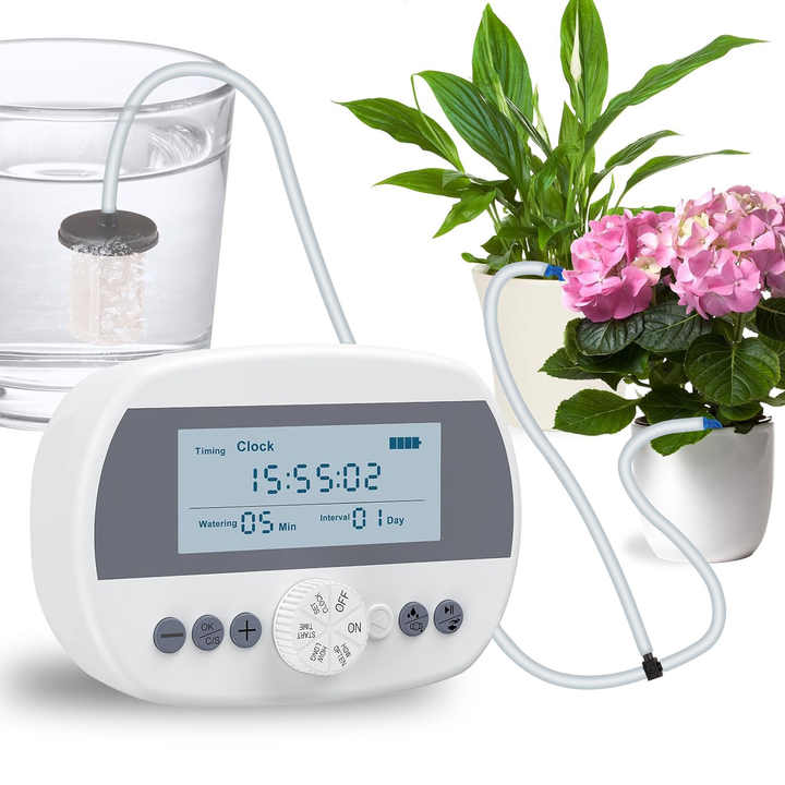 Ensemble d'irrigation automatique, système d'arrosage intelligent, contrôle par minuterie, prend en charge de 10 à 15 plantes en pot pour l'entretien des plantes d'intérieur, du patio et de la serre