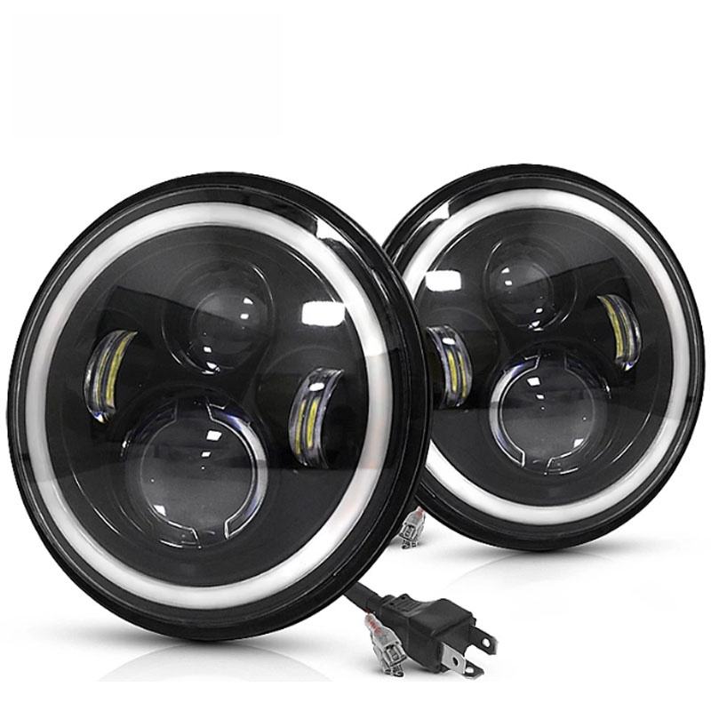 Nouveau phare LED universel 7 pouces 30W blanc Angel Eyes, feux de croisement/route, antibrouillard, 12V 6000 Lumens H4 IP68 étanche pour tout-terrain