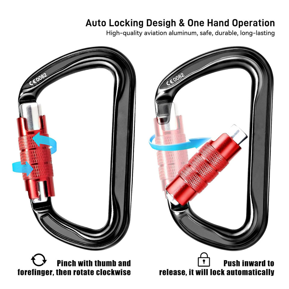 Mousqueton à verrouillage automatique en forme de D, robuste, en aluminium 7075 antirouille, pour hamac, randonnée, laisse de chien