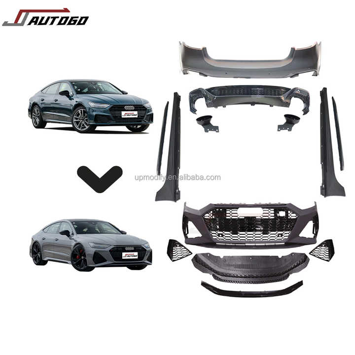 Kit de carrosserie de conversion pour Audi A7 C8 2019-2025, mise à niveau vers RS7 : pare-chocs avant et arrière, calandre, diffuseur, jupes latérales