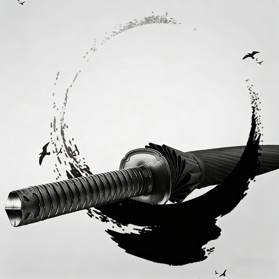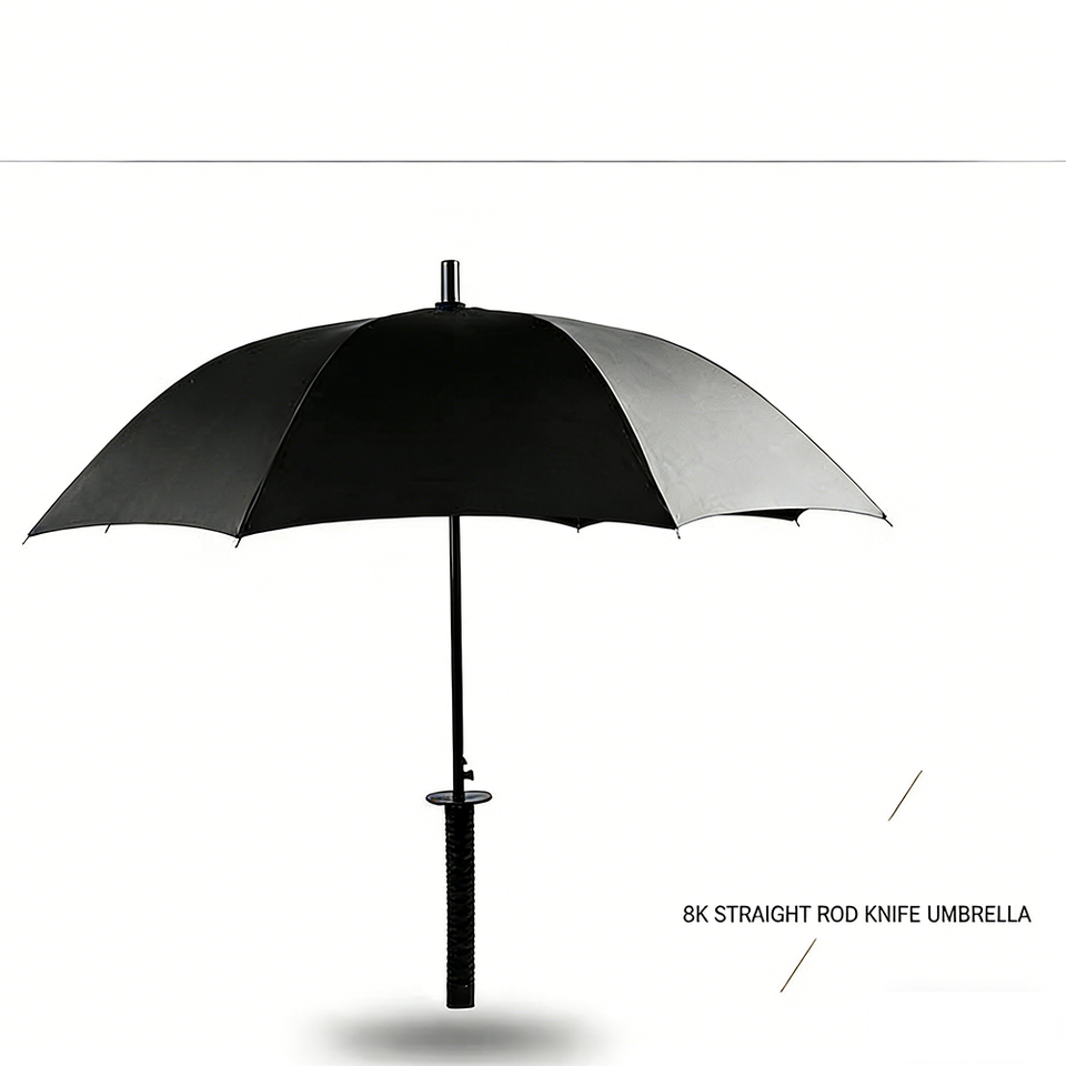 Parapluie droit automatique noir 23 pouces, 8 baleines, en tissu pongé, imperméable et coupe-vent, avec poignée en forme d'épée de samouraï, impression personnalisée