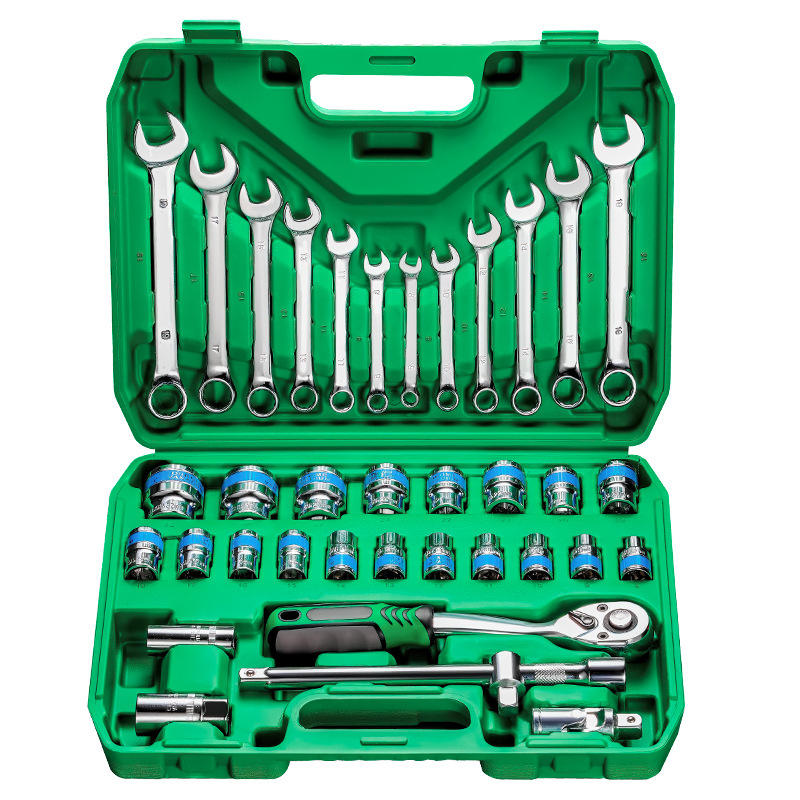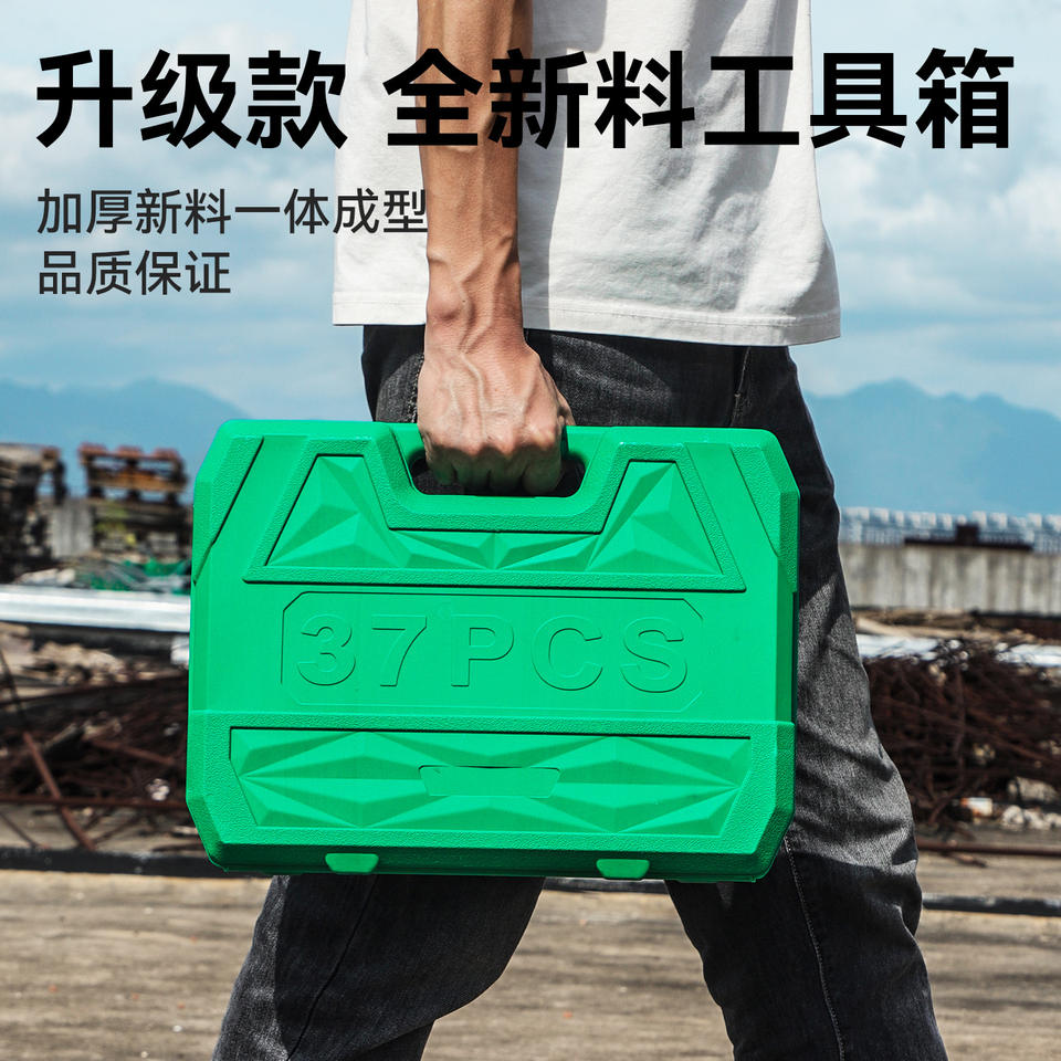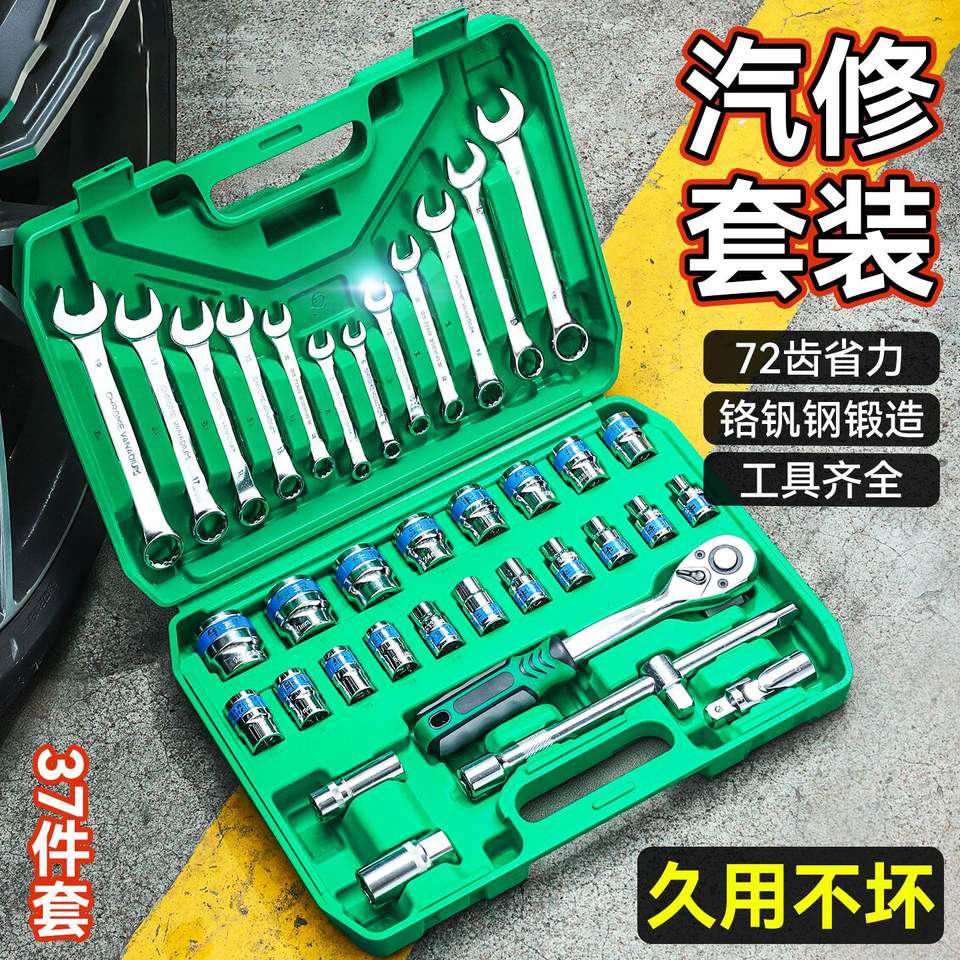 Auto Repair Tool Set 37 Pc 1/2 In Socket Set Chromium Vanadium Steel Hard Case For Mechanic Use