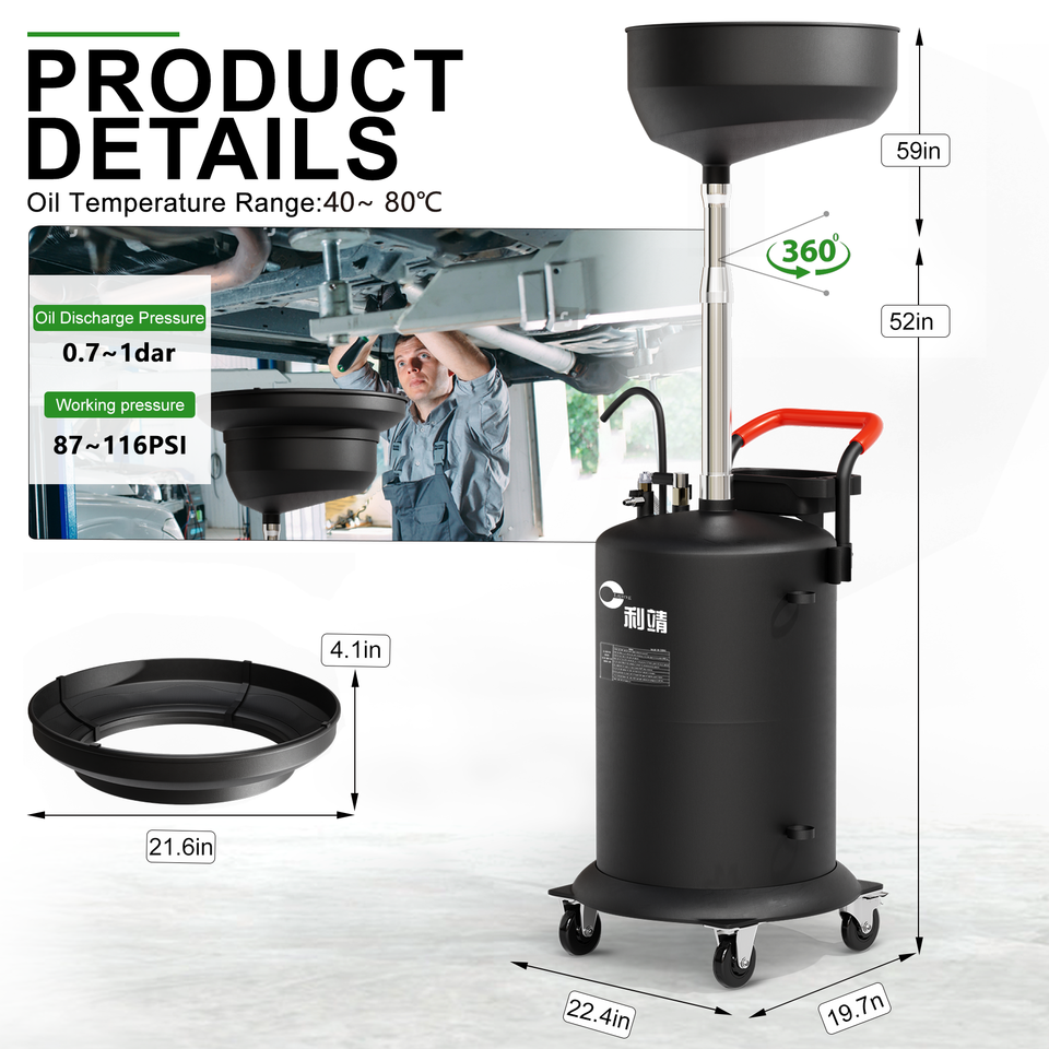 Collecteur d'huile usée de réparation automobile Machine de vidange d'huile usée mobile d'air Équipement de recyclage d'huile pour garage