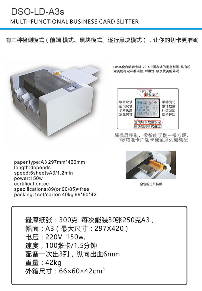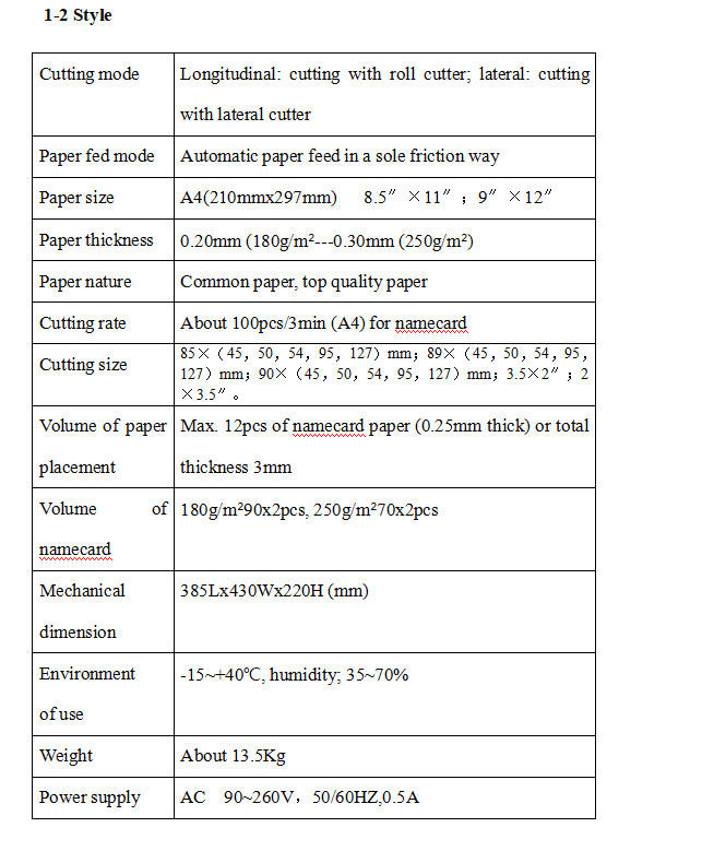 Vitesse de coupe:Environ 100pcs/3min (A4) pour carte de visite
