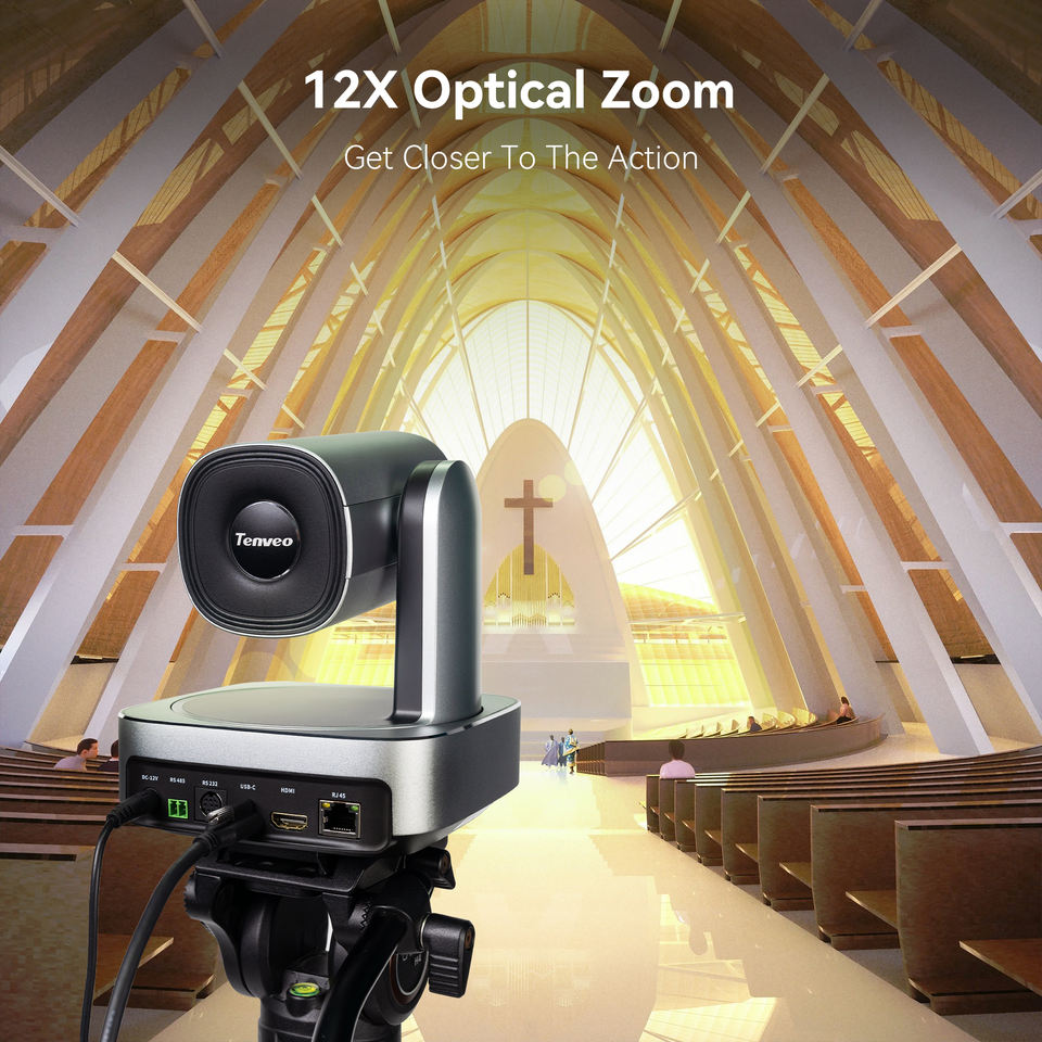 Caméra de visioconférence à suivi automatique, caméra PTZ 4K, caméra HDMI IP PoE, caméra PTZ avec zoom 12x pour diffusion en église
