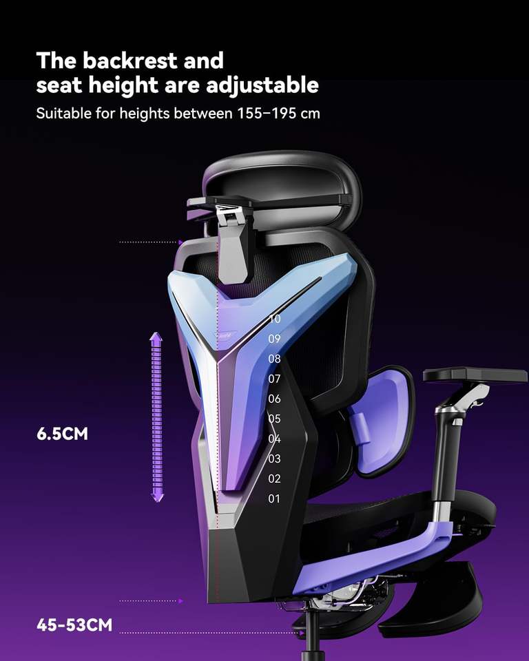 AutoFull G7-Support lombaire dynamique à 3 zones Accoudoirs à 360 ° CloudTech Mesh Fauteuil de jeu ergonomique et inclinable à 140 ° avec repose-pieds
