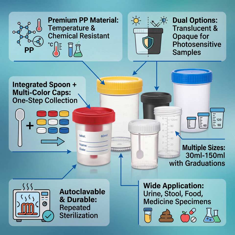 Conteneur à échantillons en PP autoclavable 100 ml, gobelet de collecte d'échantillons d'urine et de selles avec bouchon à vis, pot de test d'échantillons de laboratoire stérile jetable