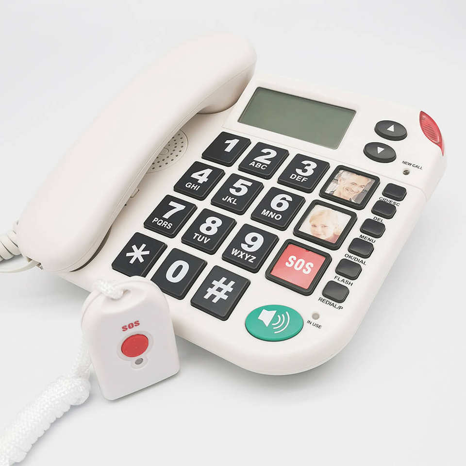 Téléphone fixe Autoleaders SOS 200 avec identification de l'appelant et alarme pour personnes âgées, avec bouton rouge, design filaire