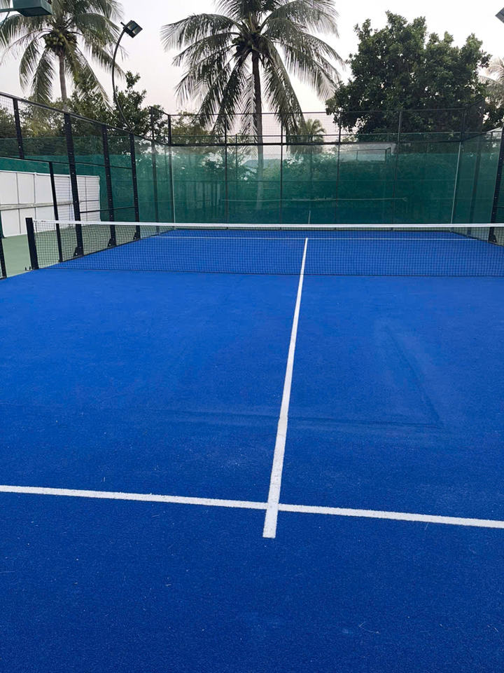 Système de maintenance automatisé pour terrains de padel avec gazon autodrainant, gestion intelligente des installations, offre d'exportation B2B internationale
