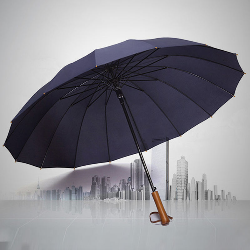 Nom:25 pouces 16 Côtes Grande Taille Droite Manche En Bois Parapluie